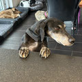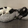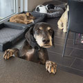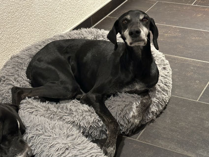 Im Oktober 2025 reiste ich alleine (Moni musste unser Rudel hüten) nach Kos um eigentlich einen weiteren, ca. sechs jährigen Pointer mit gebrochenem Vorderbein, zu adoptieren. Beim Gassigehen stellte sich jedoch heraus, dass er trotz seines lädierten Beines zu energiegeladen für uns sein würde. Jake, der ja immer noch im Shelter bei Rita und Colin lebte, war dagegen immer noch sehr anhänglich und gut an der Leine zu führen. Damit war für mich klar, dass wir Jake selbst adoptieren, damit er die restlichen Jahre bei uns ein "normales" Hundeleben verbringen kann. Obwohl er noch nie in einem Haus lebte, hat er sich in nur wenigen Tagen an seine neue Umgebung angepasst und sich die schönsten Körbchen ausgesucht. Inzwischen darf er schon im Freilauf über die von Herbstlaub bedeckten Wiesen oberhalb unseres Dorfes flitzen und wir sind glücklich, wenn er beim Fernsehschauen entspannt zwischen meinen Beinen kuschelt :-)